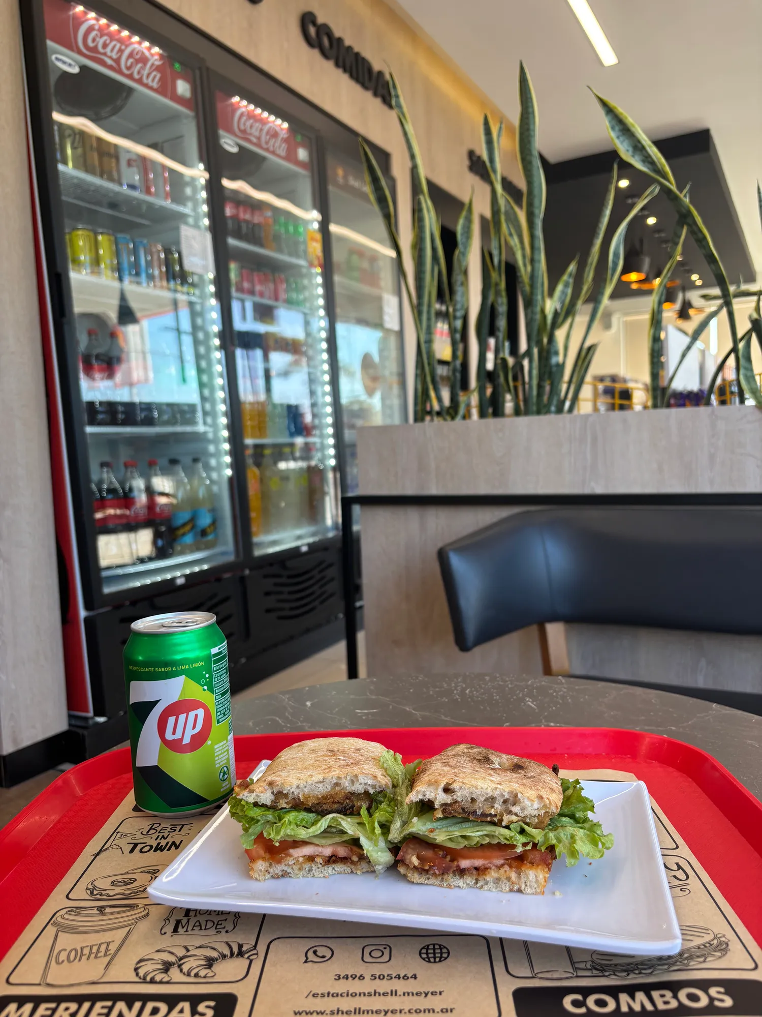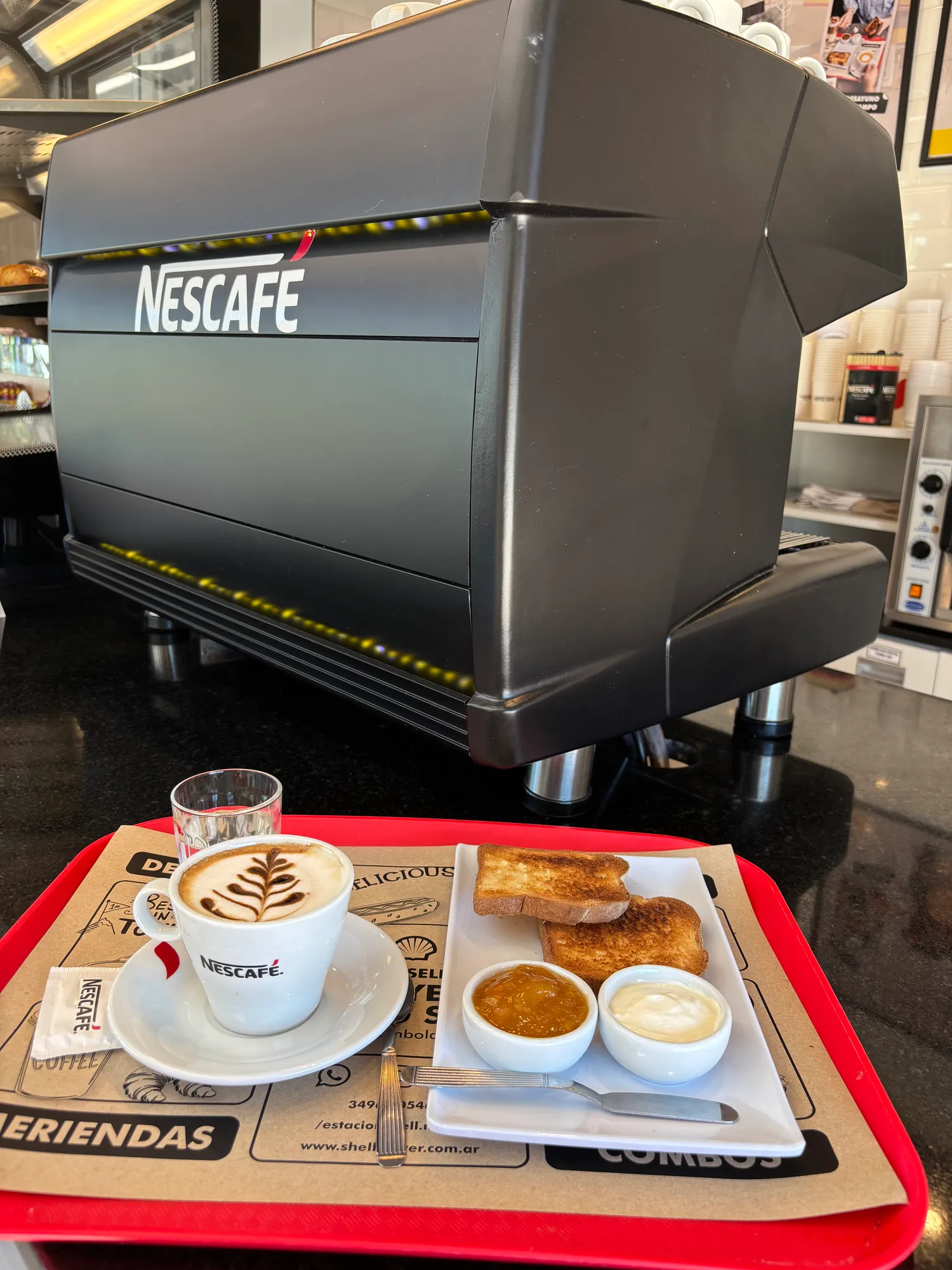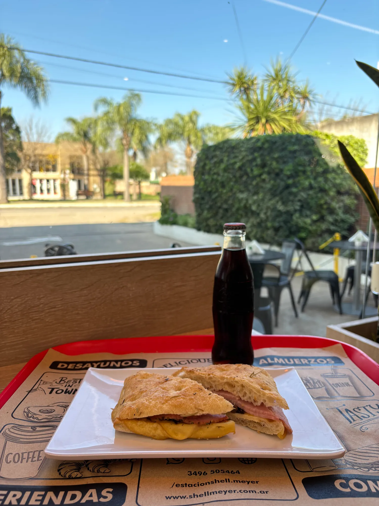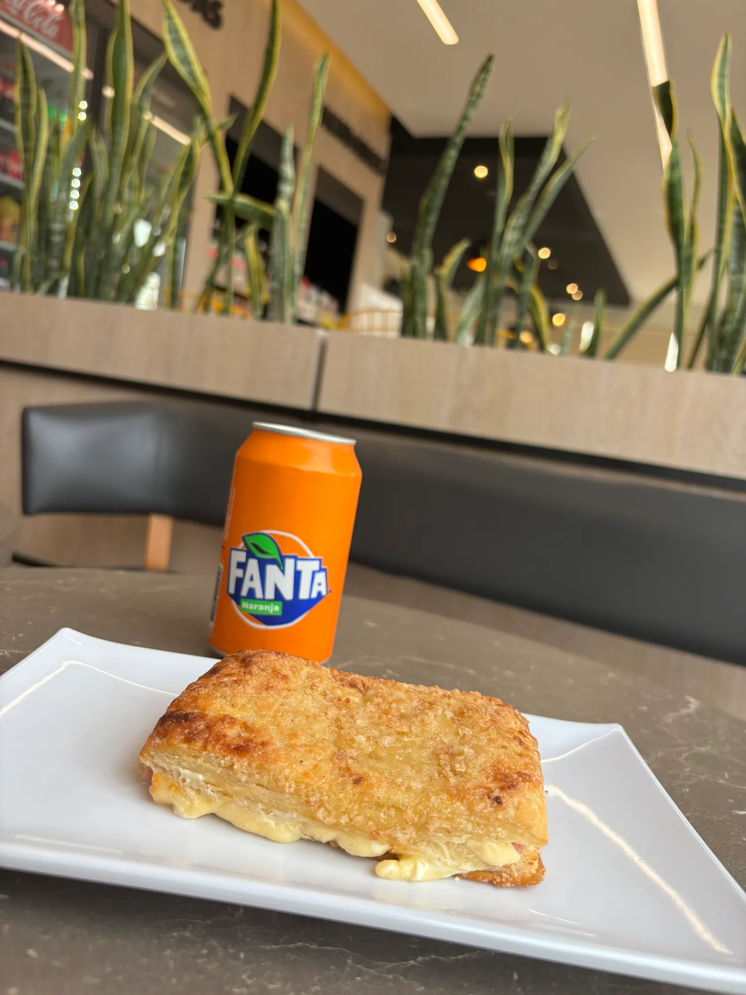 Infusión, tostado de la casa, exprimido de naranja y soda.