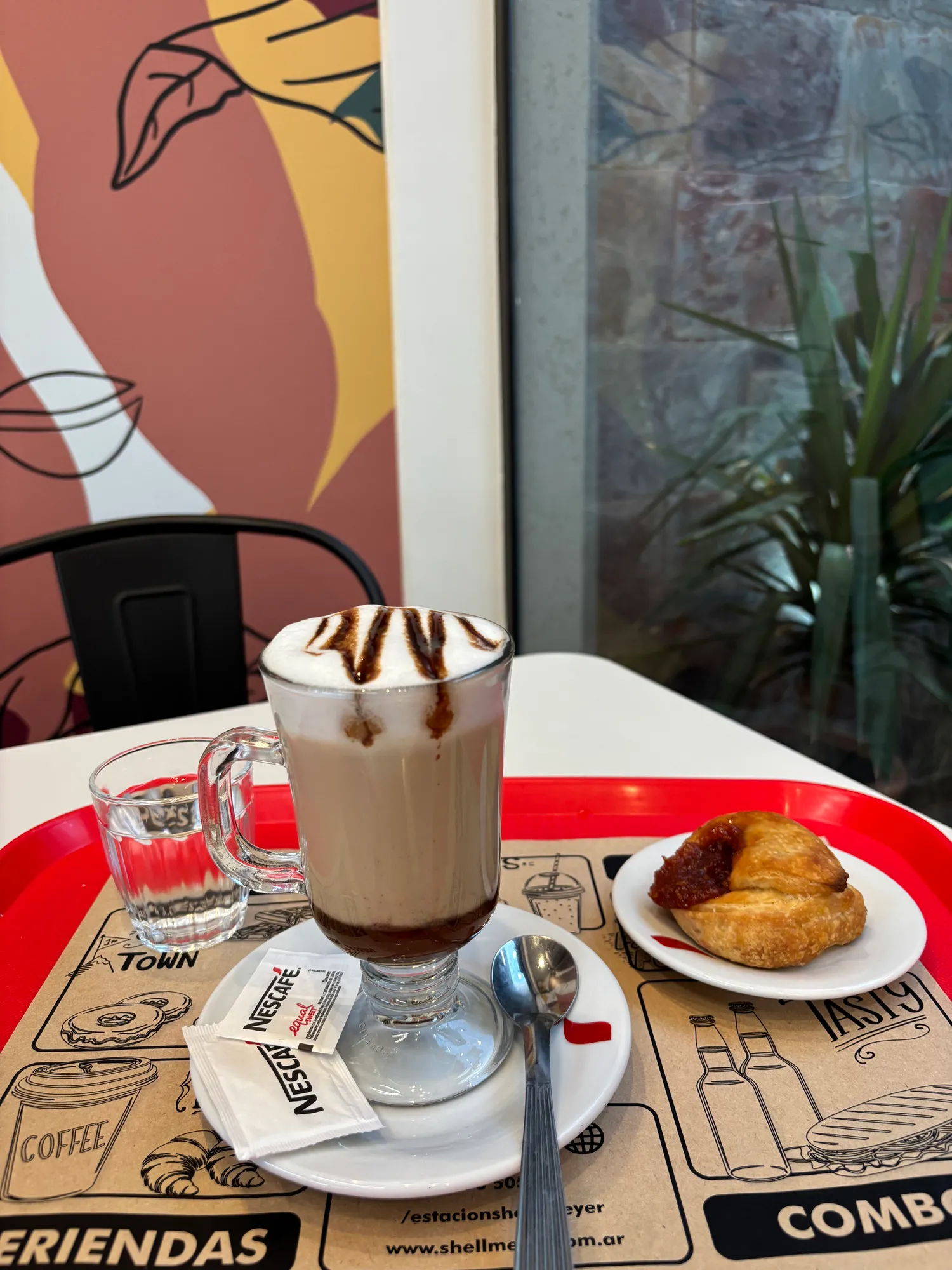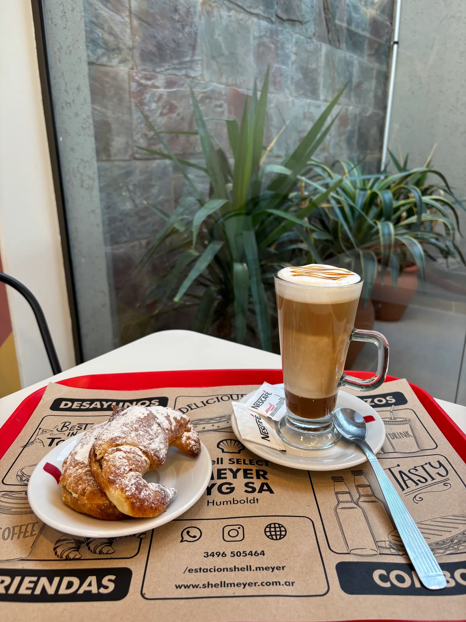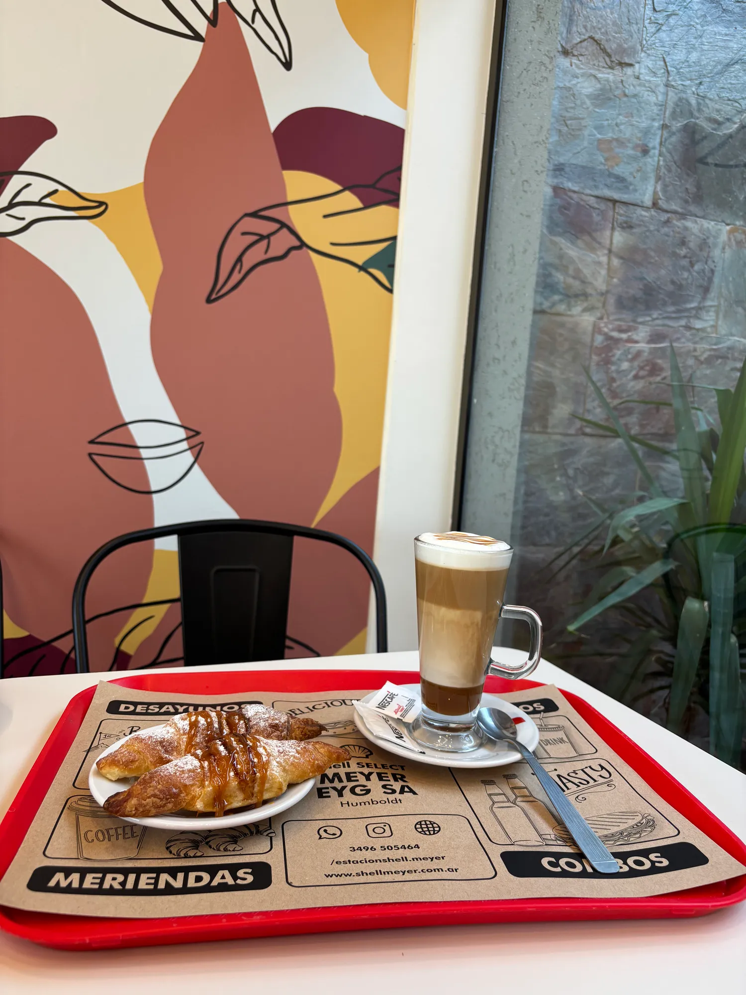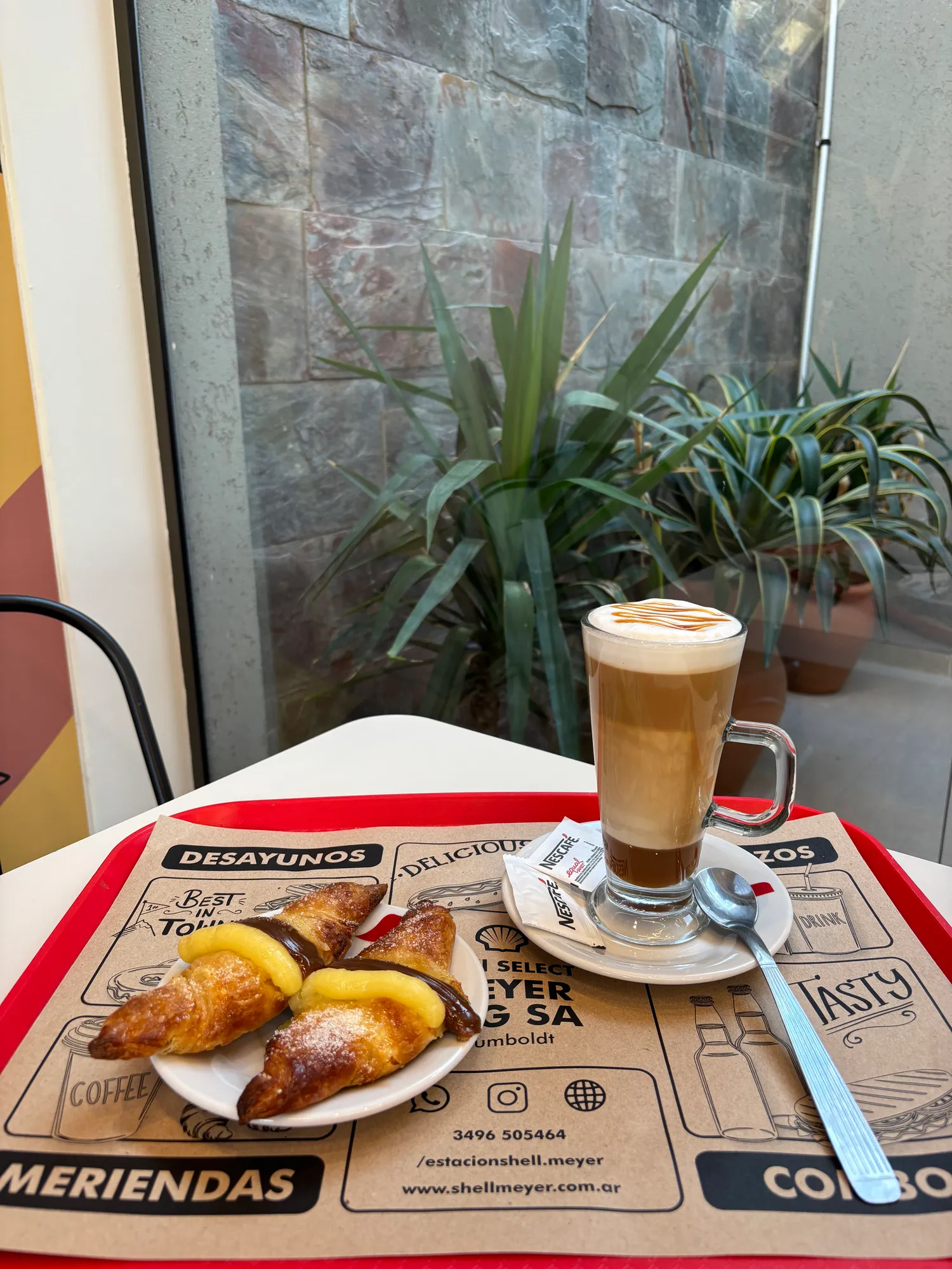 Infusion,croissant con jamon y queso o sólo con vaso de soda y vaso de exprimido